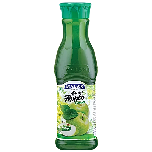 Mala’s Green Apple Crush is a premium fruit concentrate that captures the crisp, tart, and tangy-sweet essence of handpicked emerald green apples. This 750ml PET bottle features a pulpy texture with 35% real apple pulp, providing a refreshing and authentic taste that balances sweetness with a slight acidic touch. It is a highly versatile product, designed for creating professional-grade mocktails, cocktails, milkshakes, and smoothies, or used directly as a gourmet topping for ice cream and desserts.