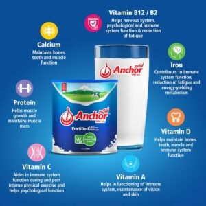 Anchor Fortified Full Cream Milk Powder 2.25kg delivers rich, creamy goodness with every cup. Made from high-quality dairy, this milk powder is fortified with essential vitamins and minerals to support strong bones, immunity, and overall well-being.