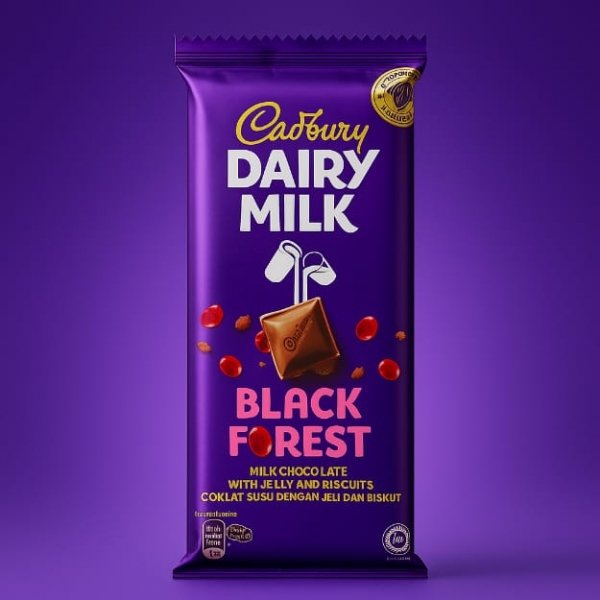 Indulge in the rich and fruity goodness of the Cadbury Dairy Milk Black Forest Chocolate 130g. This delicious chocolate bar combines Cadbury’s smooth and creamy milk chocolate with cherry-flavoured jellies and crunchy biscuit pieces, inspired by the classic Black Forest dessert.