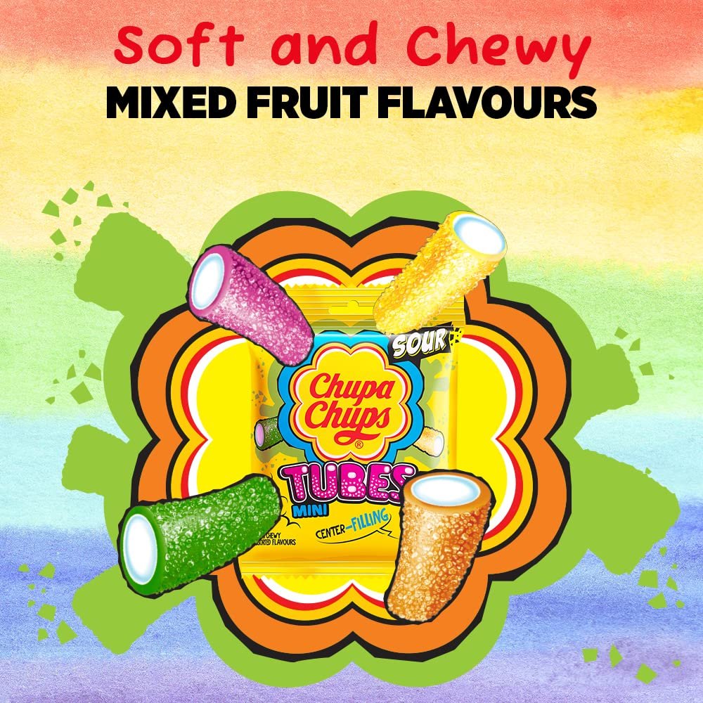 Experience a world-class treat with a local touch. Chupa Chups Sour Tubes Mini, manufactured in India, brings you the perfect fusion of intense sourness and creamy sweetness. These innovative candies feature a “Fizz Fizz” sour-sanded exterior that gives way to a delightful, smooth center-filling. The soft and chewy mini tube format is specifically designed for a satisfying texture and a burst of mixed fruit flavors in every bite. This 22g pouch is an excellent choice for a quick snack or a fun addition to a retail collection, offering the iconic Chupa Chups quality produced right in the region.