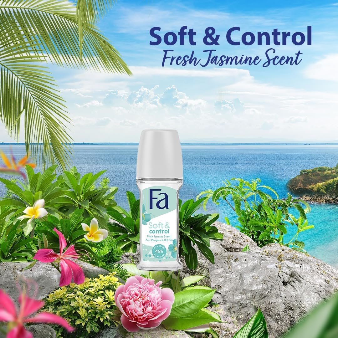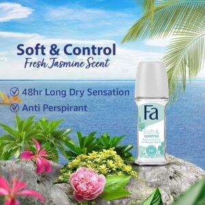 Experience ultimate freshness and reliable protection with Fa Soft & Control Fresh Jasmine Scent Roll-On Deodorant. Designed specifically for the modern woman, this anti-perspirant offers a unique combination of high-performance sweat control and a soft, floral fragrance.