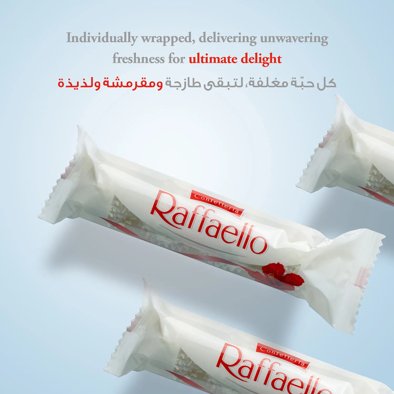 Ferrero Raffaello T3 is a pack of 3 premium coconut-almond confections. Each piece features a whole almond surrounded by creamy filling and a coconut coating.