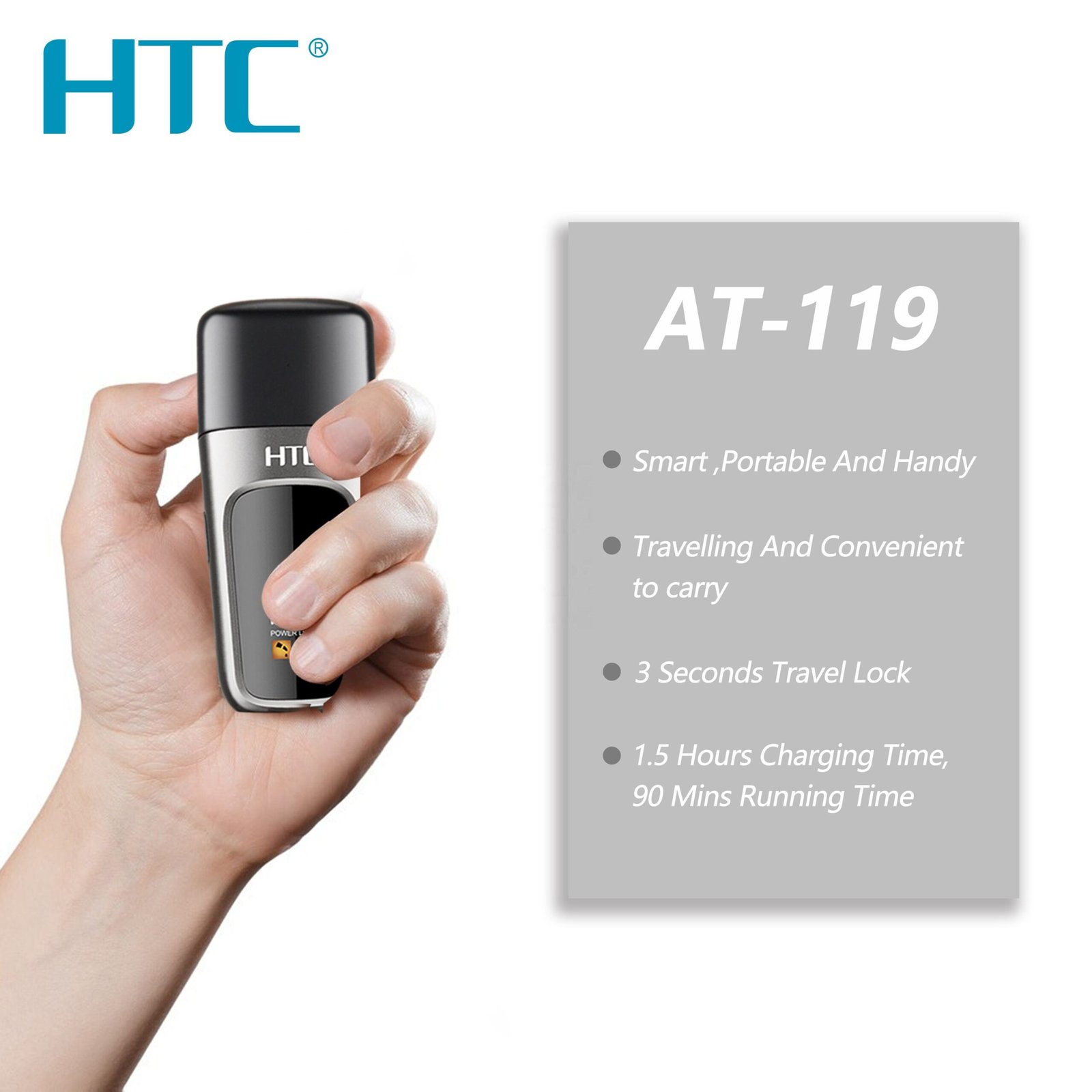 The HTC AT-119 Rechargeable Hair Clipper is the ultimate grooming solution for the modern traveler. Combining a sleek, pocket-sized form factor with professional-grade performance, this trimmer is designed to keep you looking sharp wherever you are.