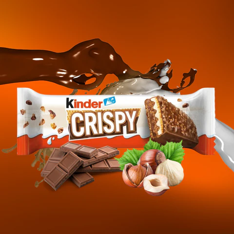 Kinder Crispy takes the traditional creamy Kinder experience and adds a satisfying “crunch” factor. Each bar consists of a delicate wafer heart packed with a duo of hazelnut and milk creams, fully dipped in fine milk chocolate. The exterior is garnished with crispy cocoa bits, ensuring every bite is a balance of smooth creaminess and light crispiness. It is a modern twist on the classic Kinder profile, designed for those who enjoy a bit of bite in their chocolate.
