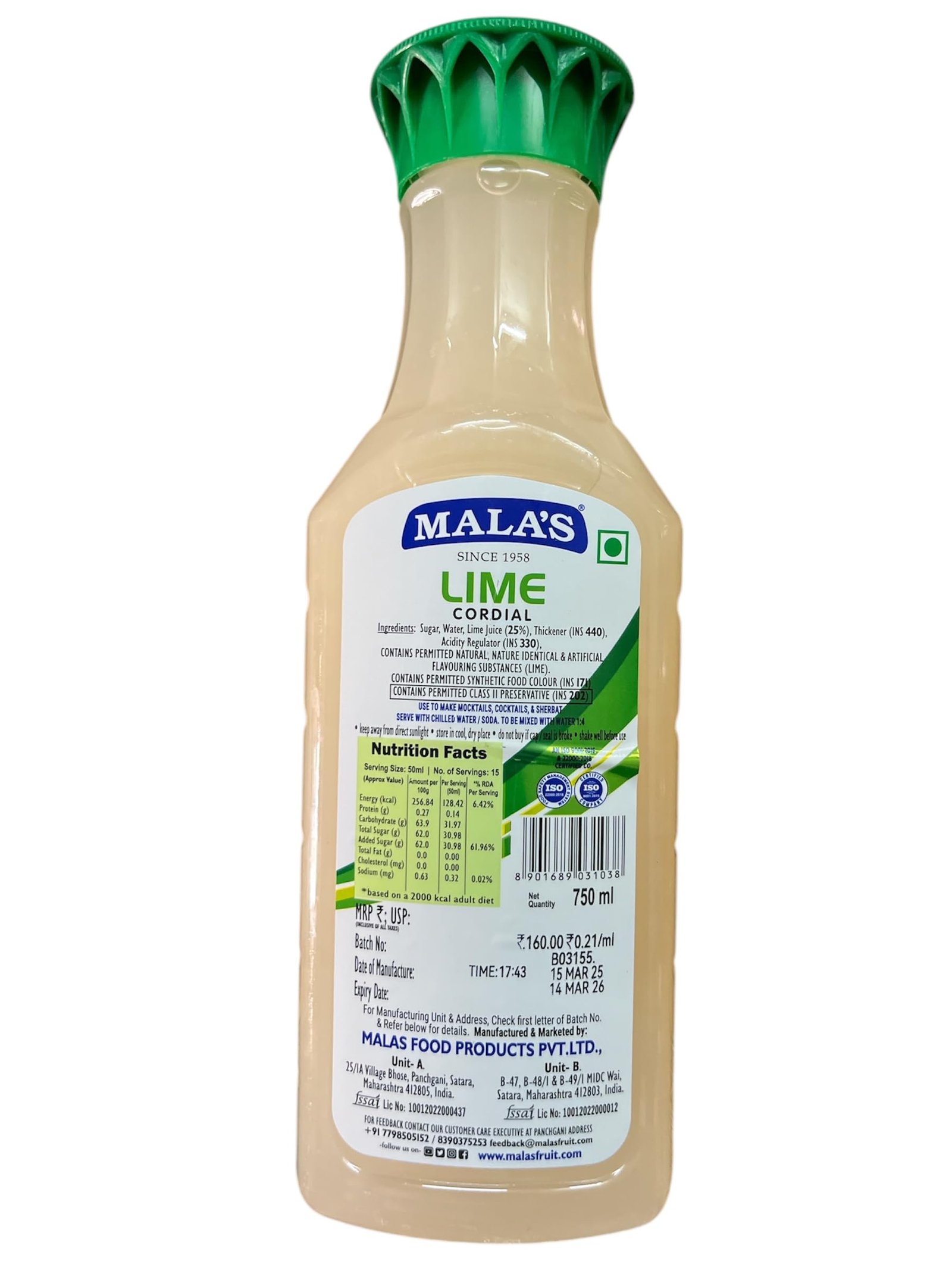 Malas Lime Cordial 750ml