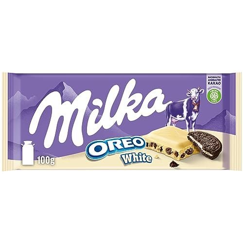 Treat yourself to the delicious combination of creamy Milka white chocolate and crunchy Oreo cookie pieces. Made with rich Alpine milk, this bar offers a smooth, sweet white chocolate base filled with bits of Oreo biscuits, creating the perfect balance of creaminess and crunch. A delightful twist on the classic Oreo chocolate, ideal for everyday indulgence, sharing, or elevating your gift hampers.