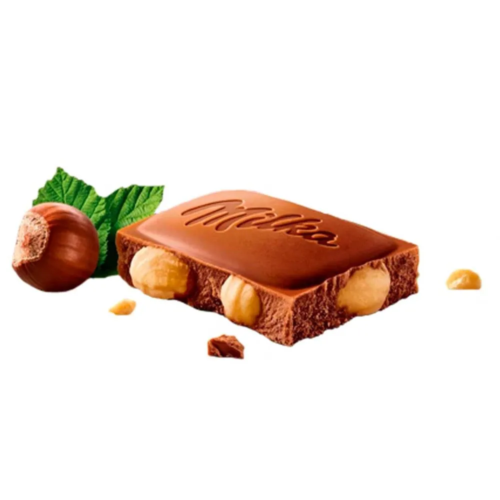Indulge in the rich combination of smooth Milka Alpine milk chocolate and whole crunchy hazelnuts. This delicious bar offers a perfect balance of creamy, melt-in-the-mouth chocolate with the satisfying crunch of premium whole hazelnuts in every bite. A timeless favorite for nut and chocolate lovers, perfect for snacking, sharing, or enhancing your premium gift hampers.
