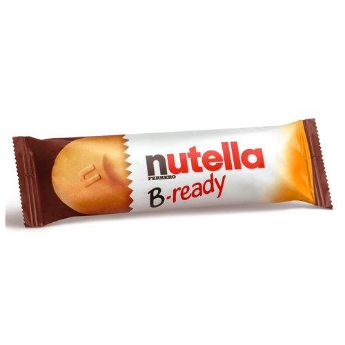 Nutella B-ready is a 22g crispy wafer shell filled with smooth Nutella hazelnut spread and topped with puffed wheat. A crunchy, creamy on-the-go snack.
