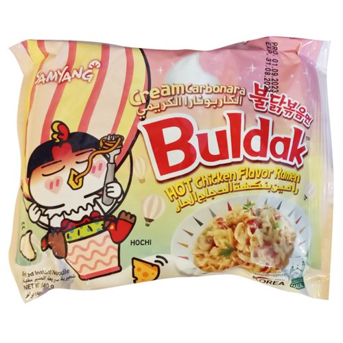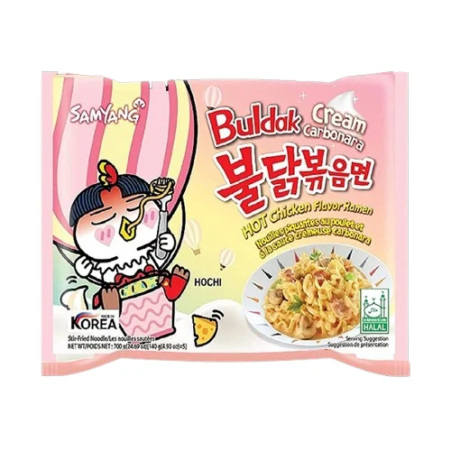 - Famous Korean spicy ramen with creamy carbonara flavor
